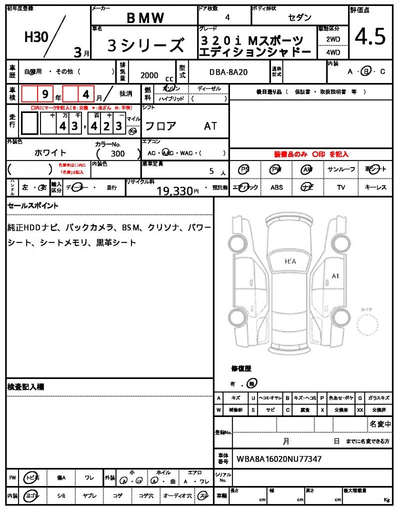 VIN/Serial No. WBA8A16020NU77347