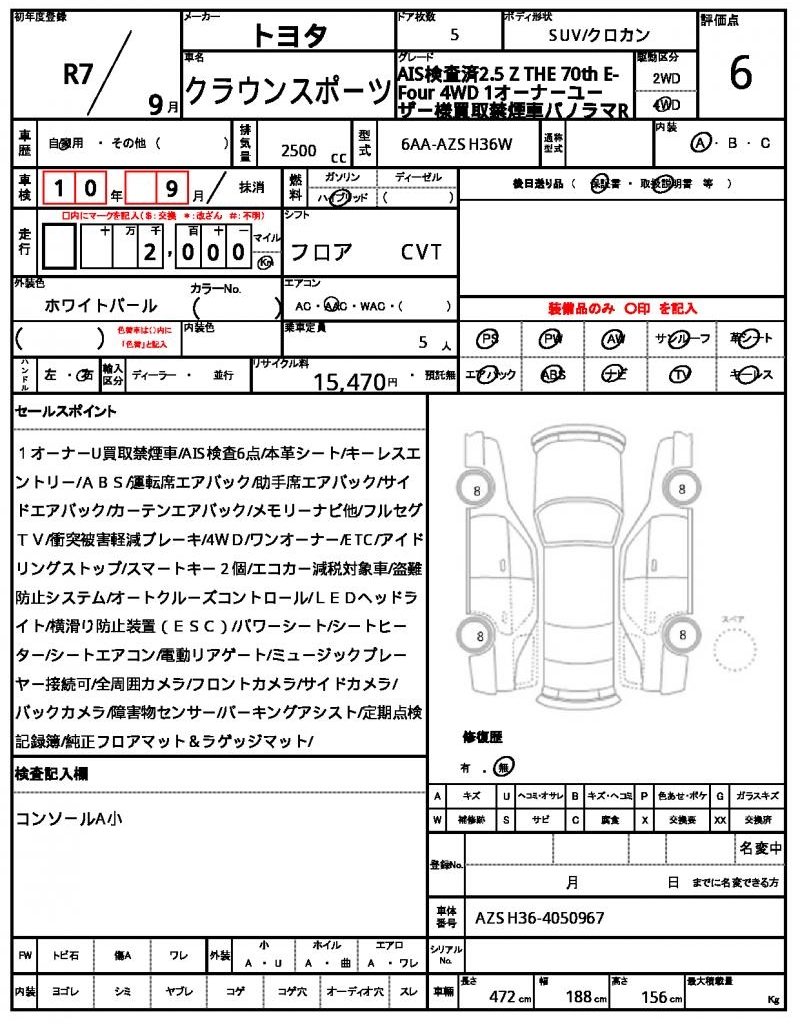 | VIN/Serial No. | AZSH36-4050967 |