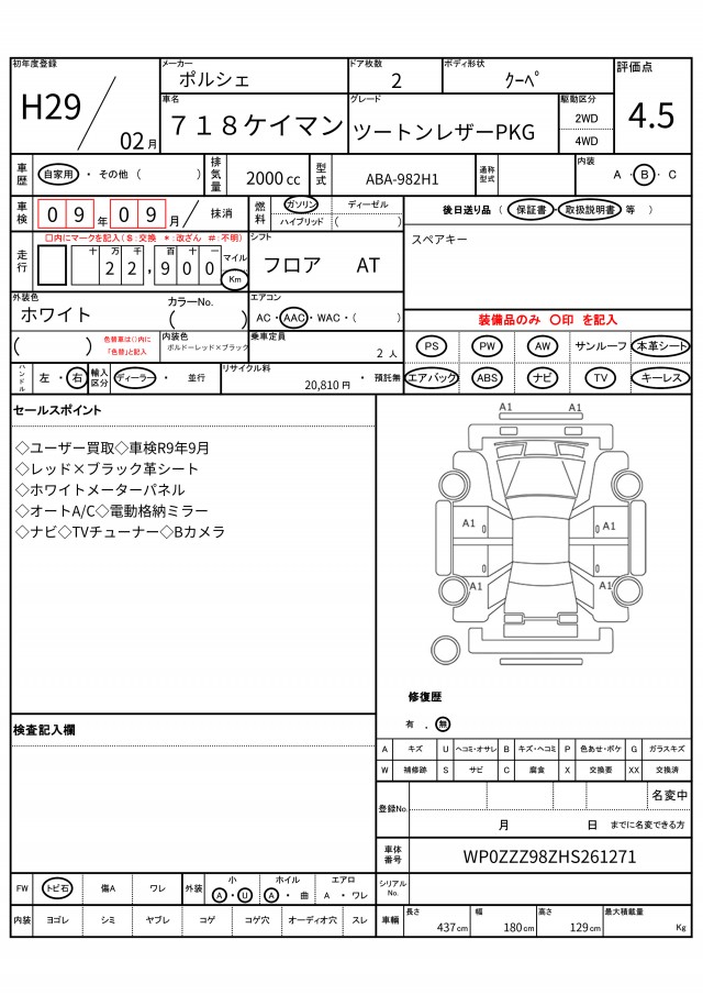 | VIN/Serial No. | WP0ZZZ98ZHS261271 |