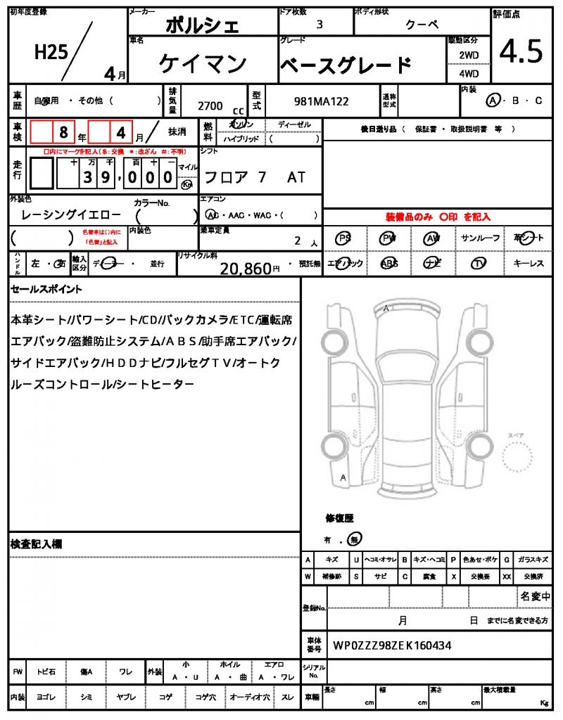 | VIN/Serial No. | WP0ZZZ98ZEK160434 |
