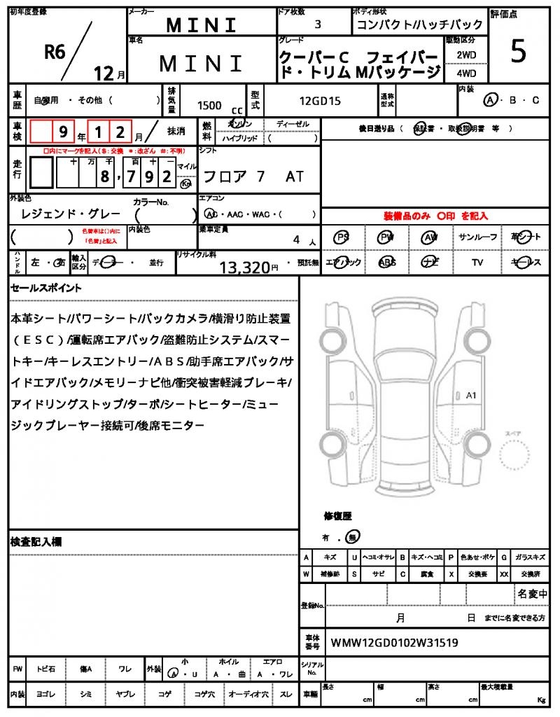 | VIN/Serial No. | WMW12GD0102W31519 |