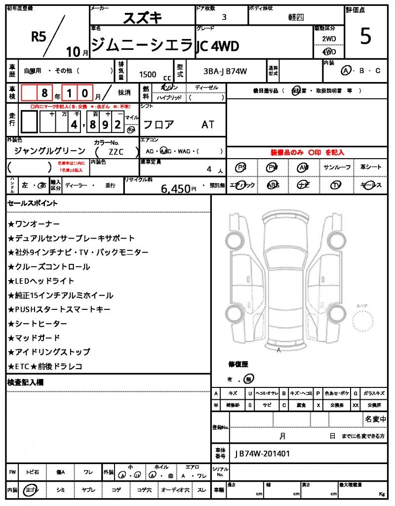 | VIN/Serial No. | JB74W-201401 |