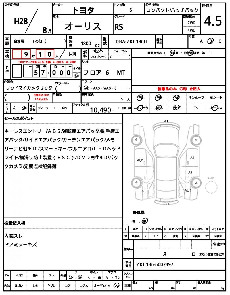 | VIN/Serial No. | ZRE186-6007497 |