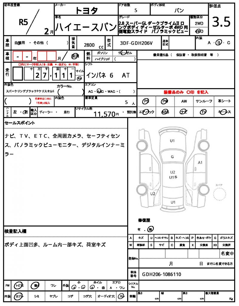 | VIN/Serial No. | GDH206-1086110 |