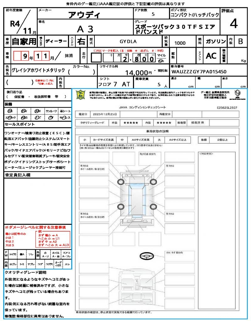| VIN/Serial No. | WAUZZZGY7PA015450 |