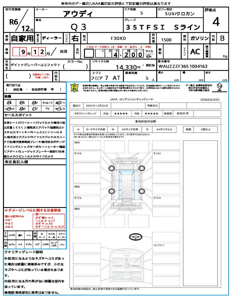 | VIN/Serial No. | WAUZZZF36S1004163 |