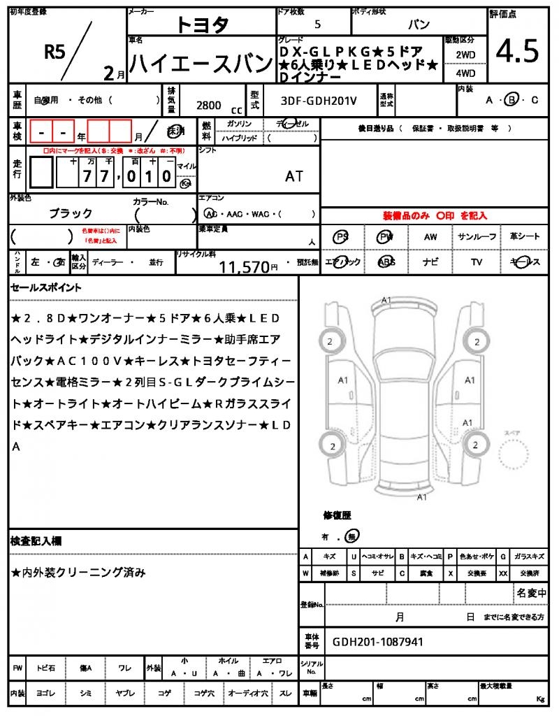 | VIN/Serial No. | GDH201-1087941 |