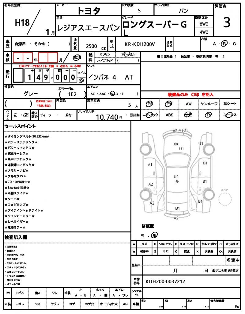 | VIN/Serial No. | KDH200-0037212 |