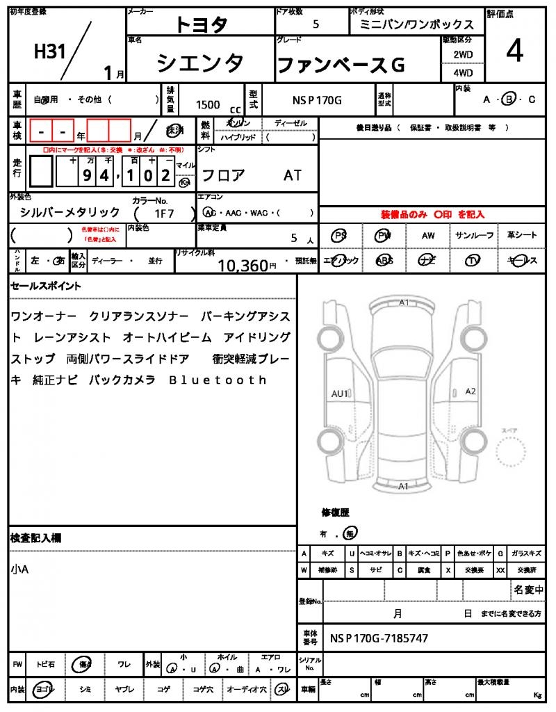 | VIN/Serial No. | NSP170G-7185747 |