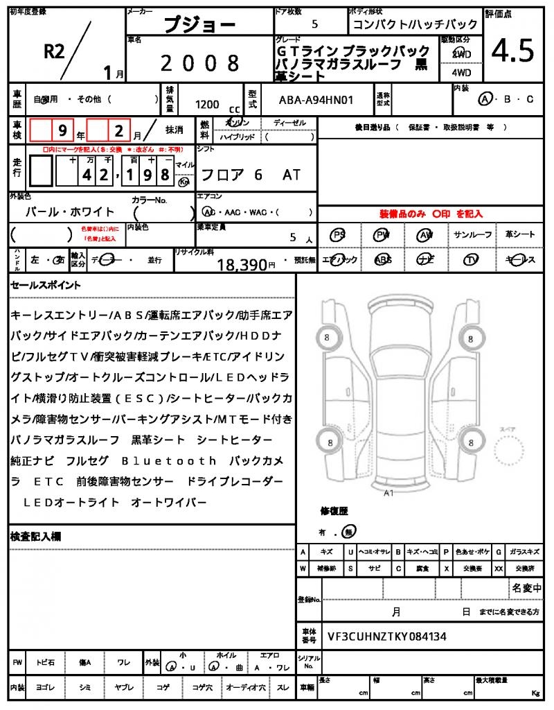 | VIN/Serial No. | VF3CUHNZTKY084134 |