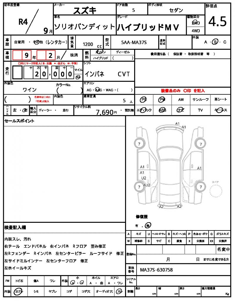 | VIN/Serial No. | MA37S-630758 |