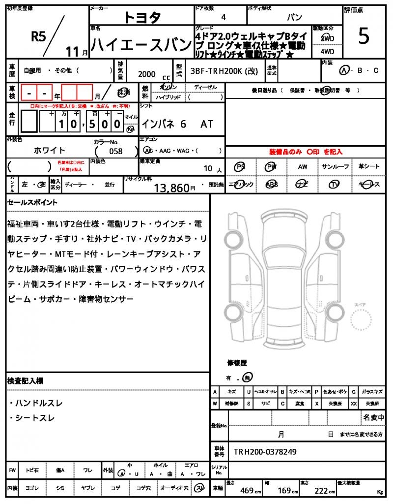 | VIN/Serial No. | TRH200-0378249 |
