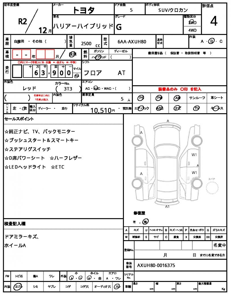| VIN/Serial No. | AXUH80-0016375 |