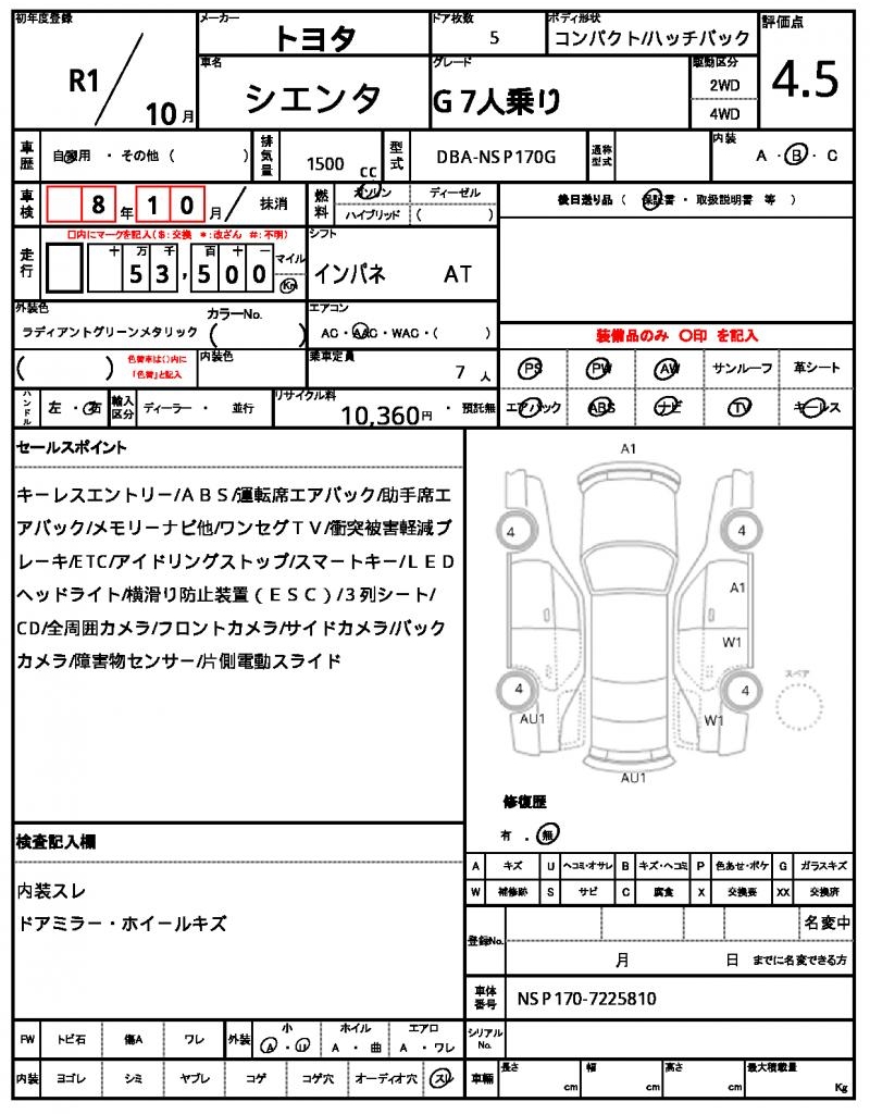 | VIN/Serial No. | NSP170-7225810 |