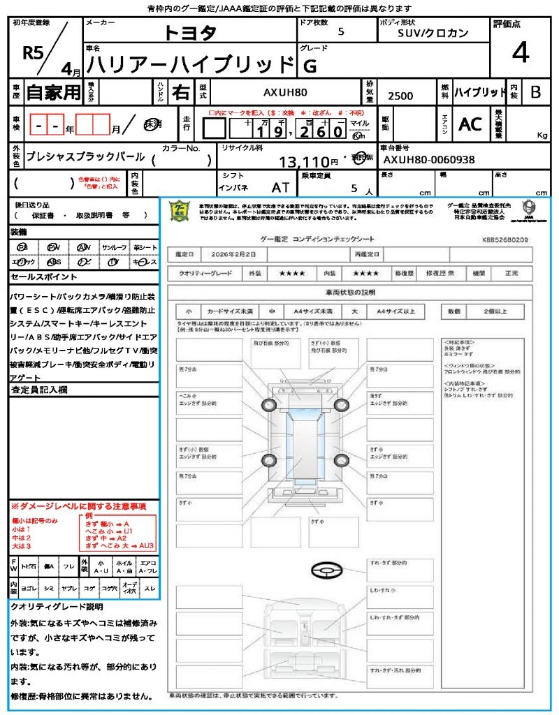 | VIN/Serial No. | AXUH80-0060938 |