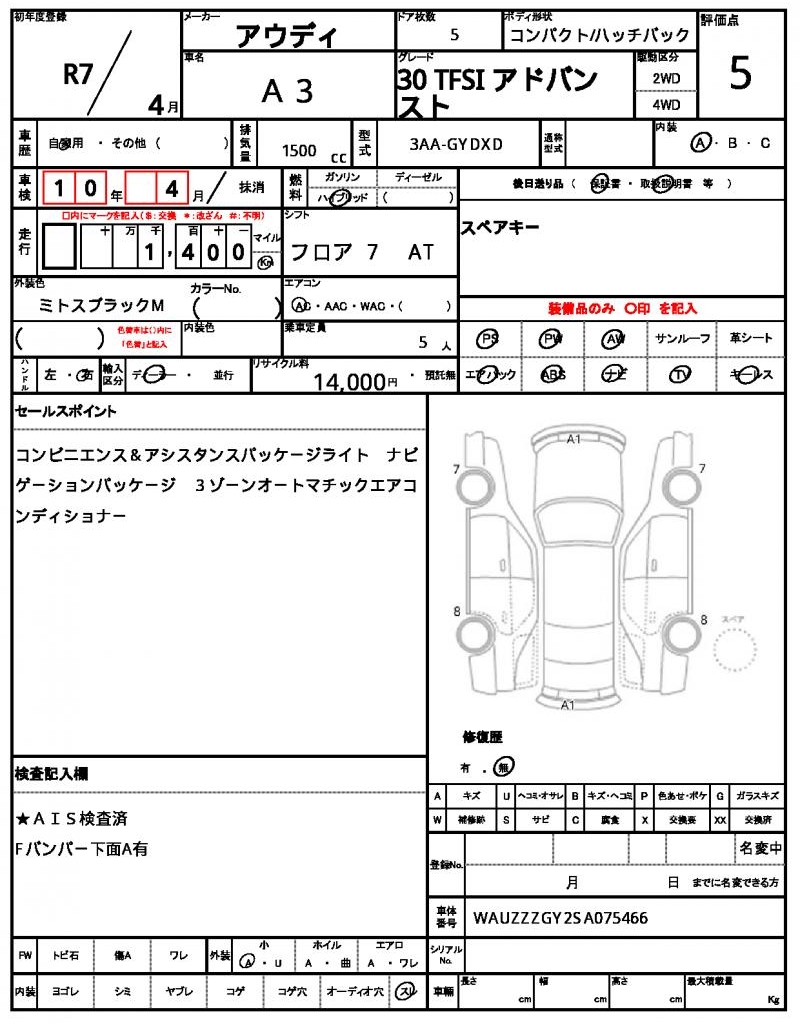 | VIN/Serial No. | WAUZZZGY2SA075466 |