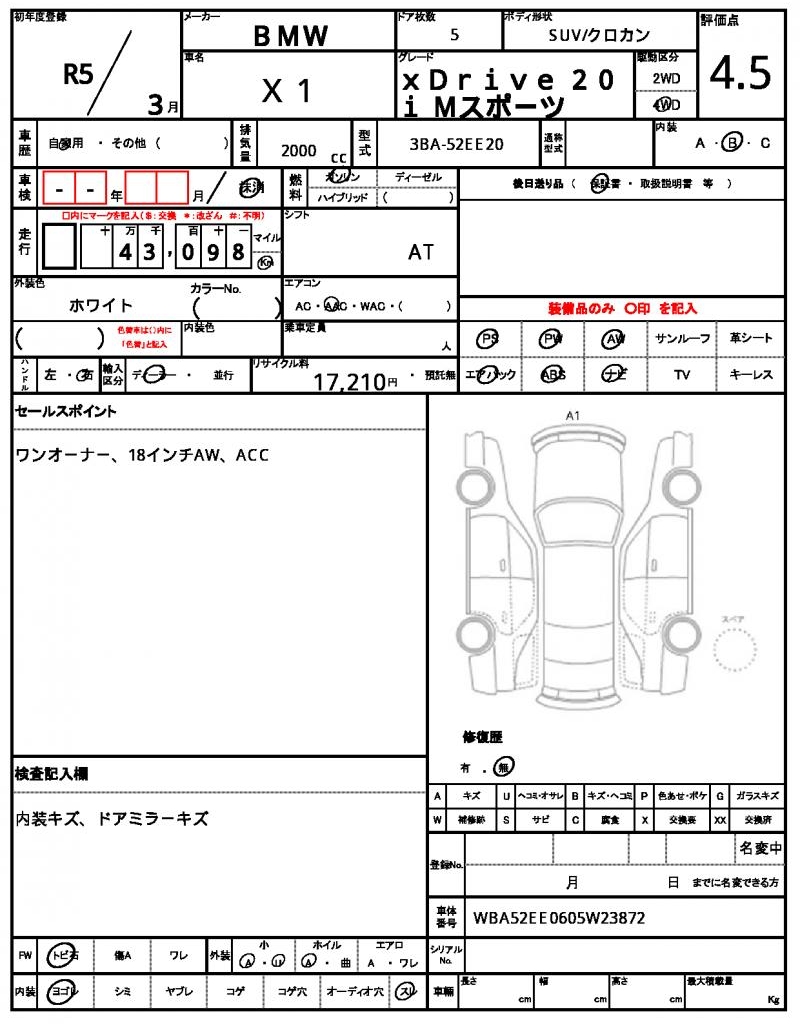 | VIN/Serial No. | WBA52EE0605W23872 |
