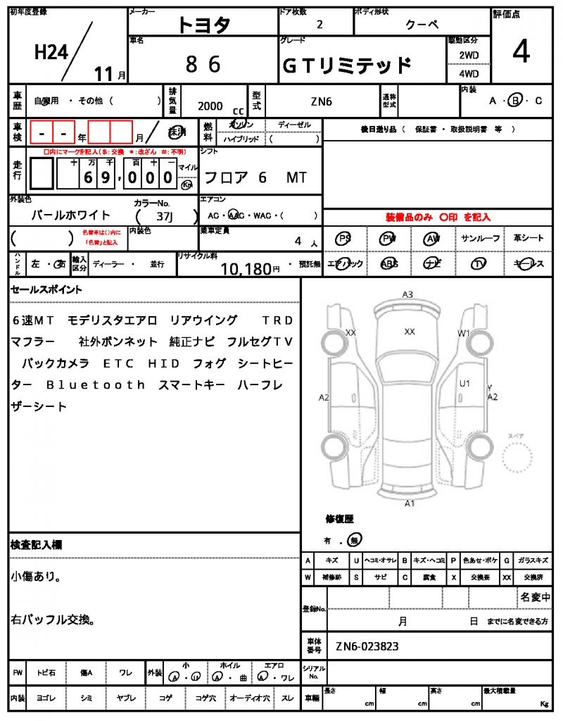 | VIN/Serial No. | ZN6-023823 |