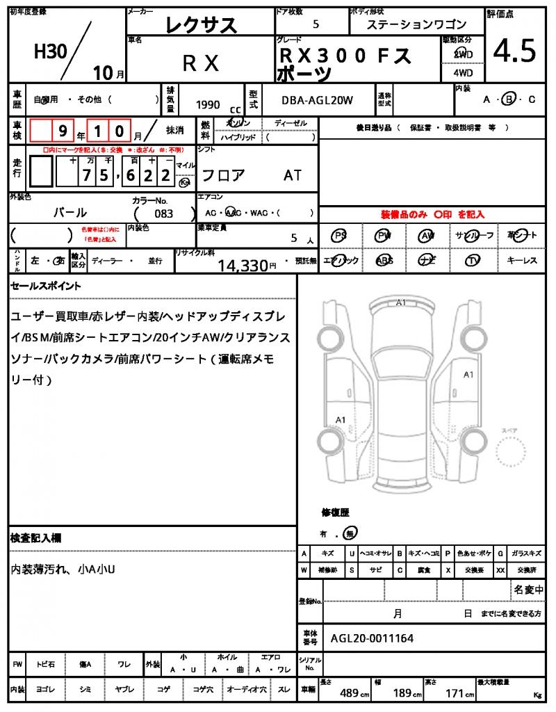 | Model code | DBA-AGL20W |