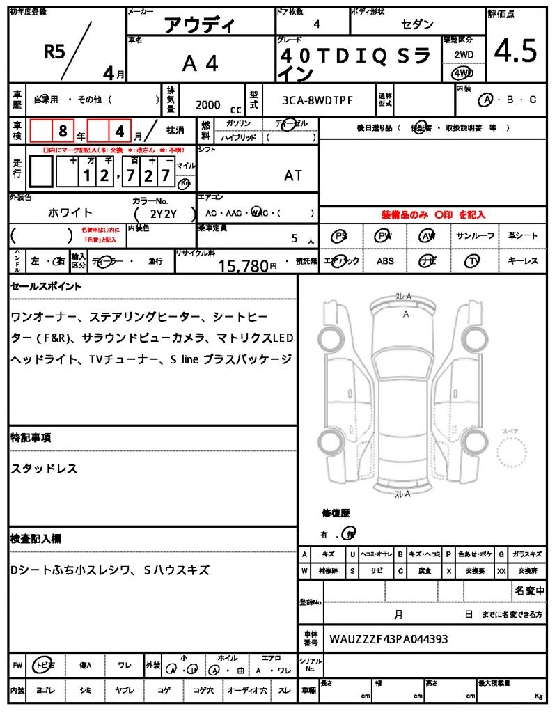 | VIN/Serial No. | WAUZZZF43PA044393 |