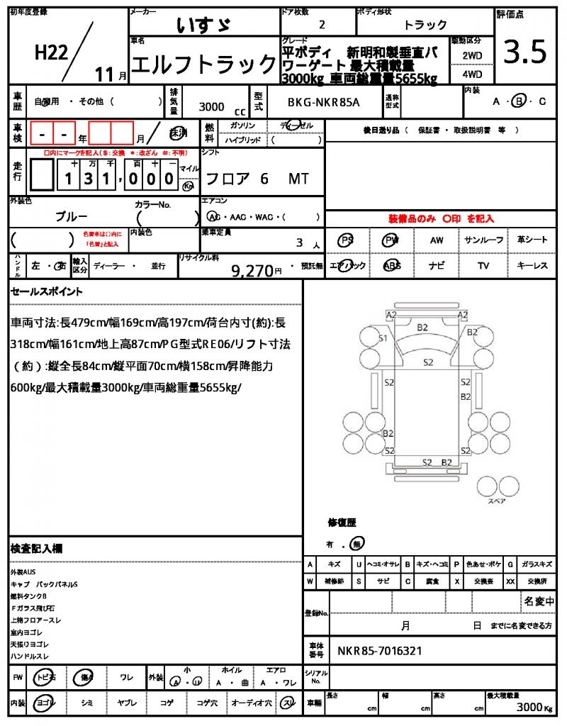 | VIN/Serial No. | NKR85-7016321 |