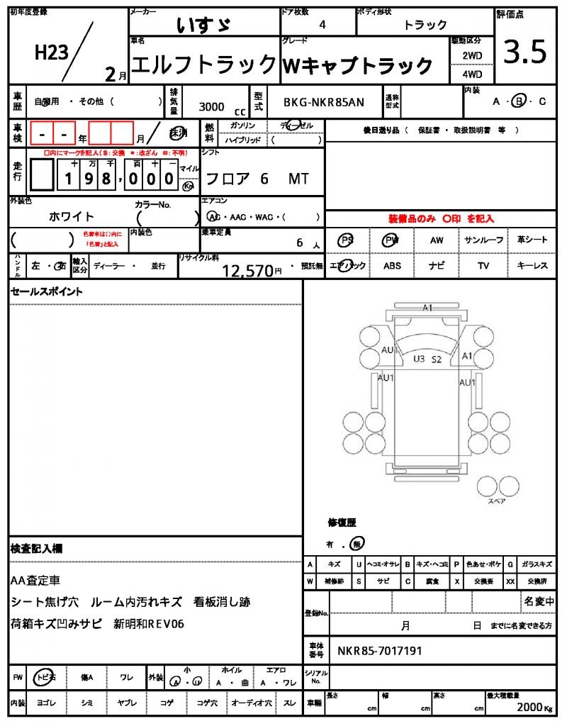 | VIN/Serial No. | NKR85-7017191 |
