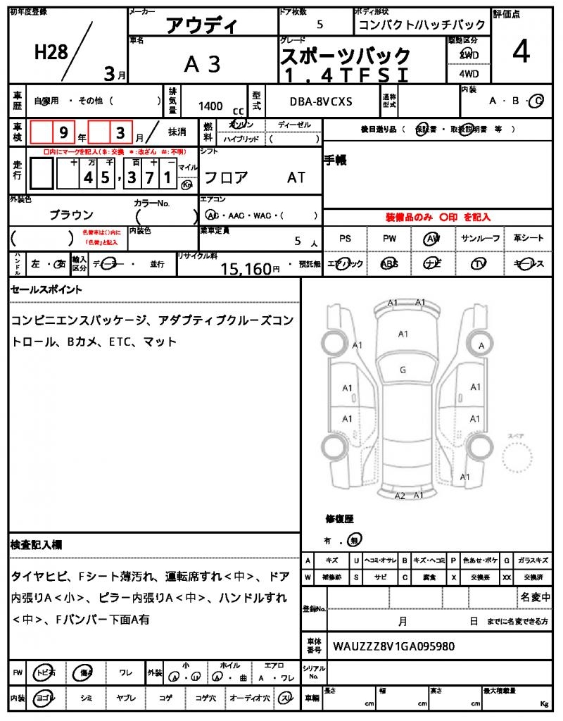 VIN/Serial No. WAUZZZ8V1GA095980