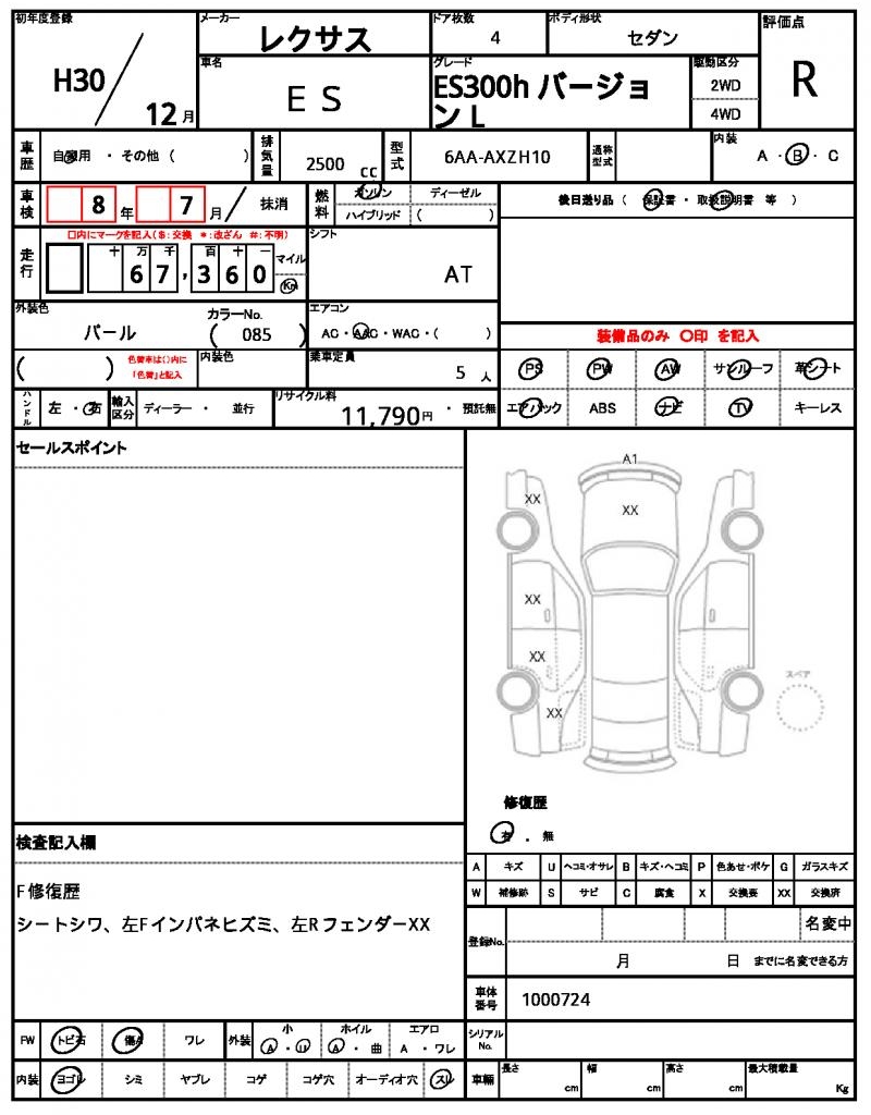 | VIN/Serial No. | 1000724 |