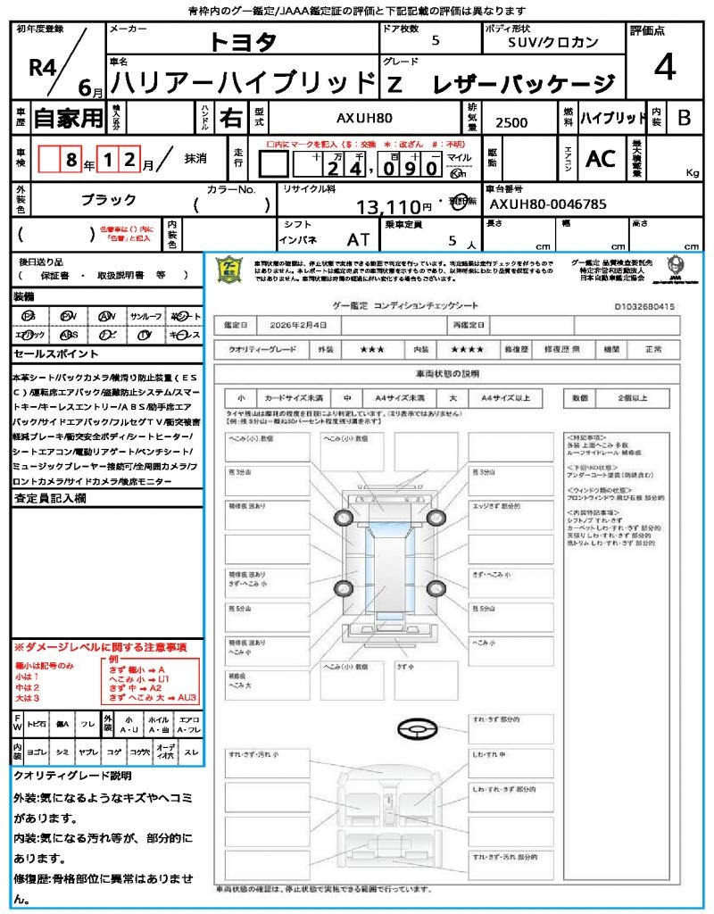 | VIN/Serial No. | AXUH80-0046785 |