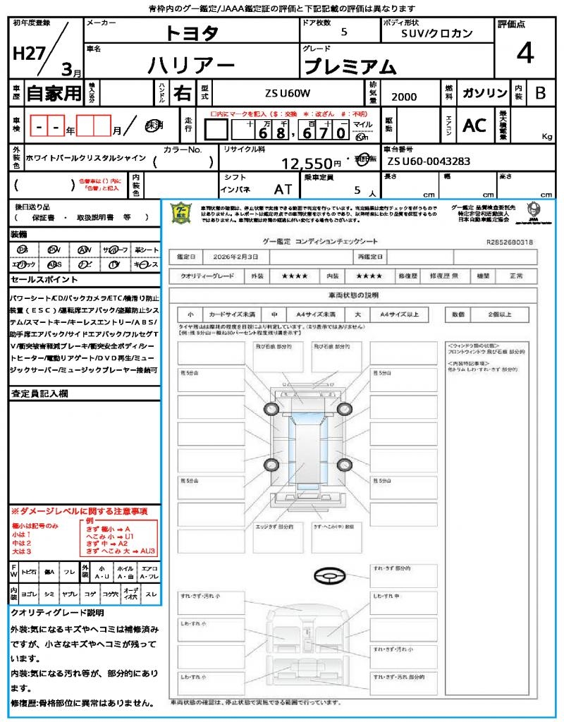 | VIN/Serial No. | ZSU60-0043283 |