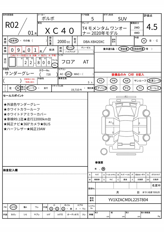 | VIN/Serial No. | YV1XZACMDL2257804 |