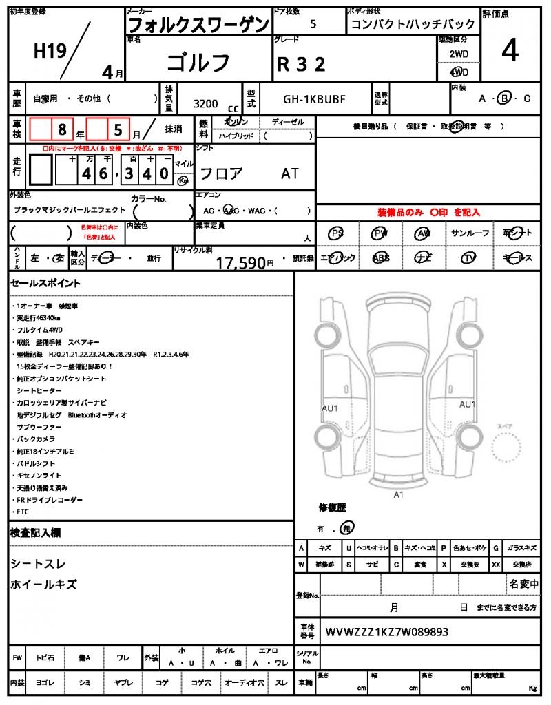 | VIN/Serial No. | WVWZZZ1KZ7W089893 |