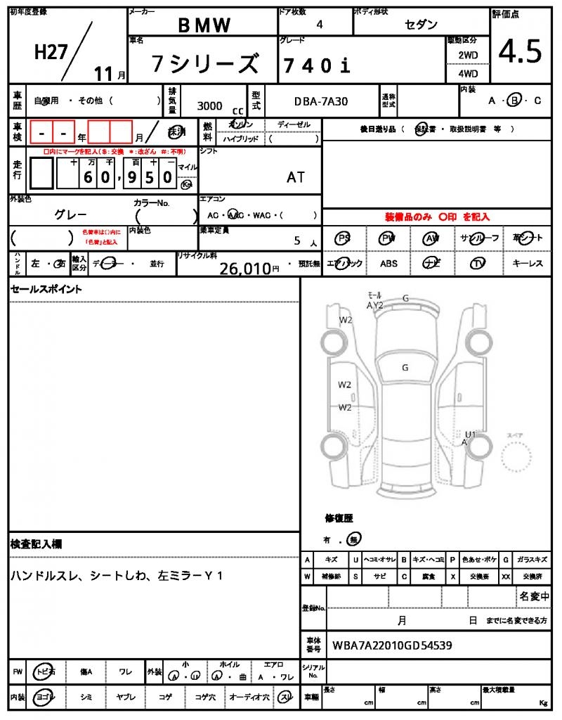 | VIN/Serial No. | WBA7A22010GD54539 |