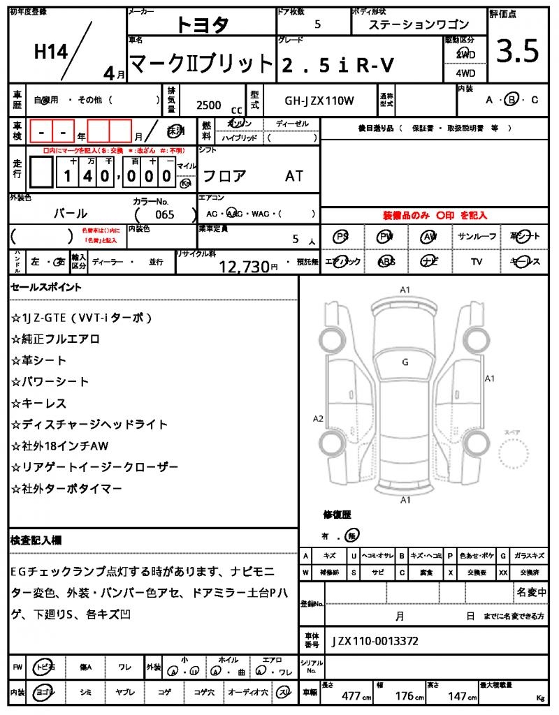 | VIN/Serial No. | JZX110-0013372 |
