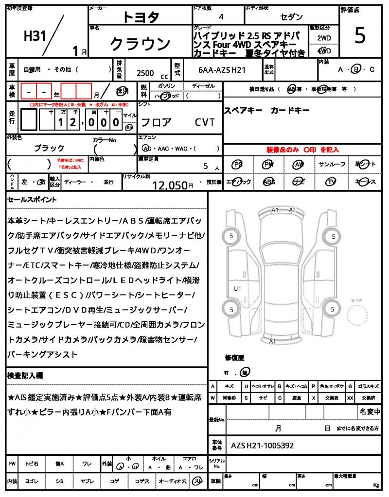 | VIN/Serial No. | AZSH21-1005392 |