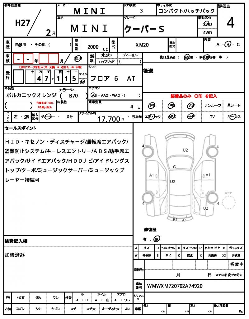 | VIN/Serial No. | WMWXM720702A74920 |