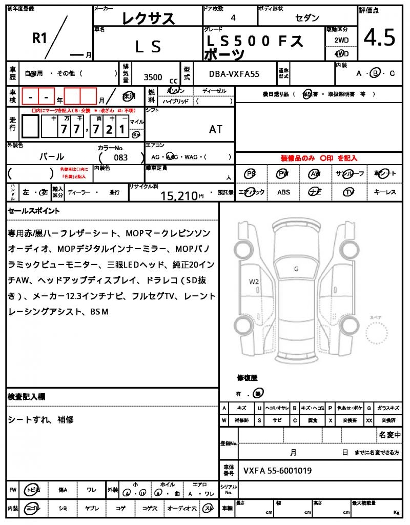 | VIN/Serial No. | VXFA 55-6001019 |