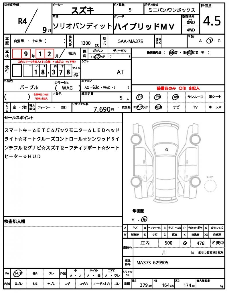 | VIN/Serial No. | MA37S-629905 |