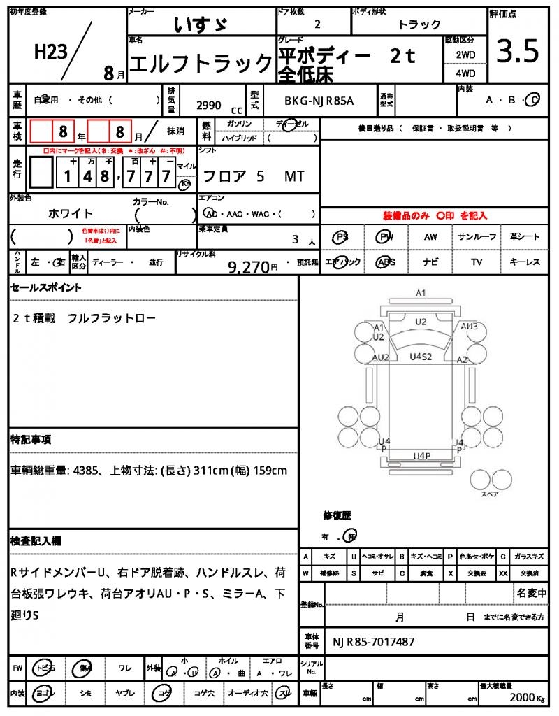 | VIN/Serial No. | NJR85-7017487 |