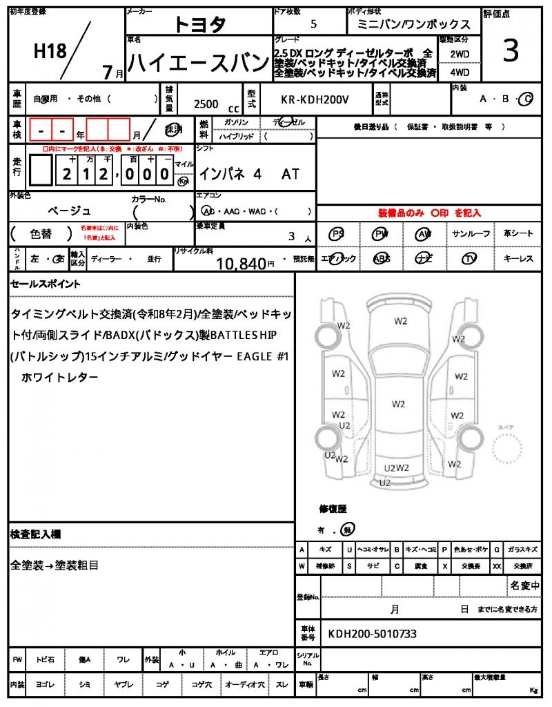 | VIN/Serial No. | KDH200-5010733 |