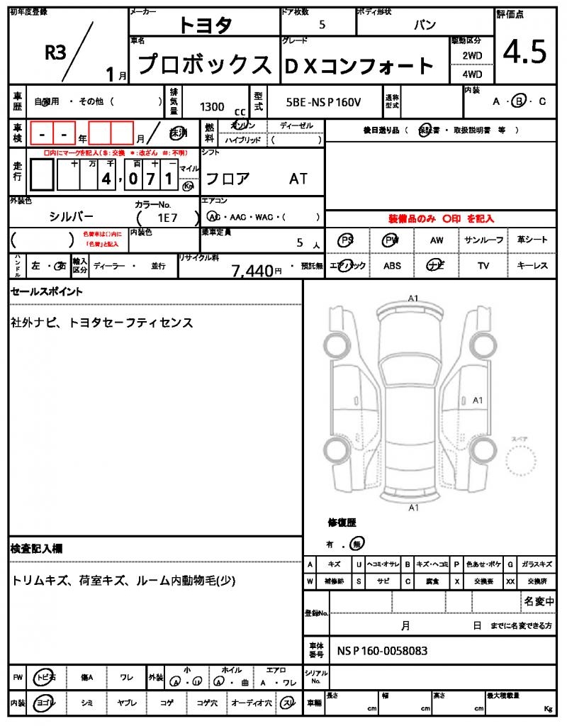 | VIN/Serial No. | NSP160-0058083 |