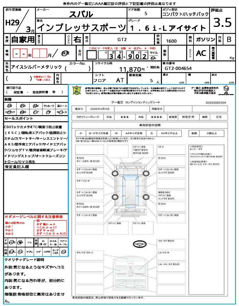 | VIN/Serial No. | GT2-004654 |