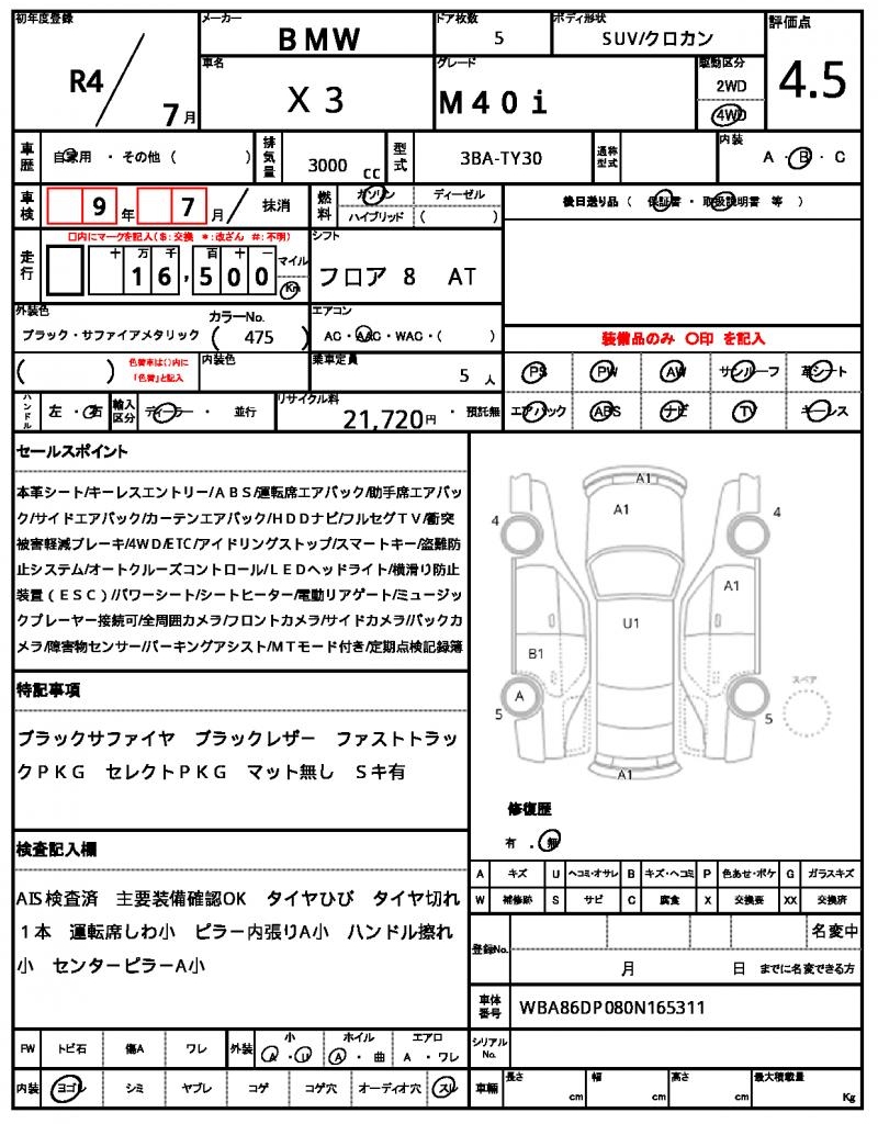 | VIN/Serial No. | WBA86DP080N165311 |