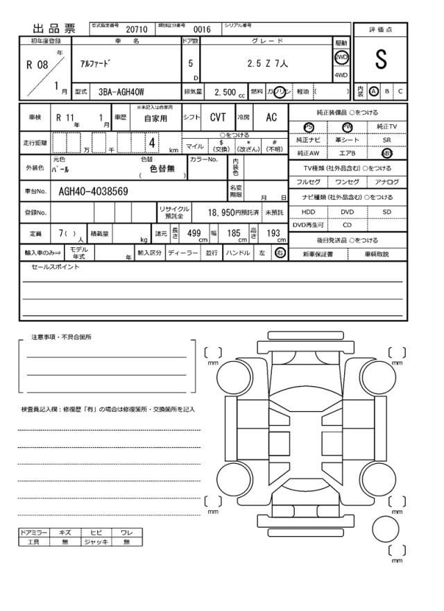 | VIN/Serial No. | AGH40-4038569 |