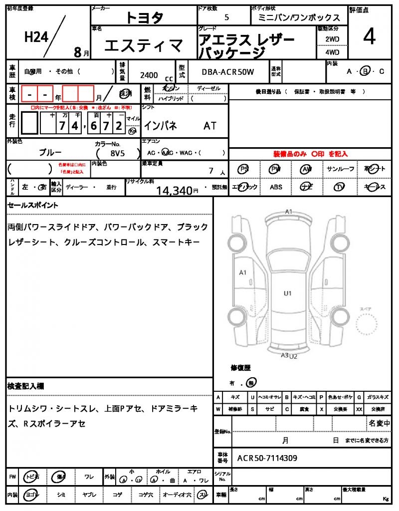| VIN/Serial No. | ACR50-7114309 |
