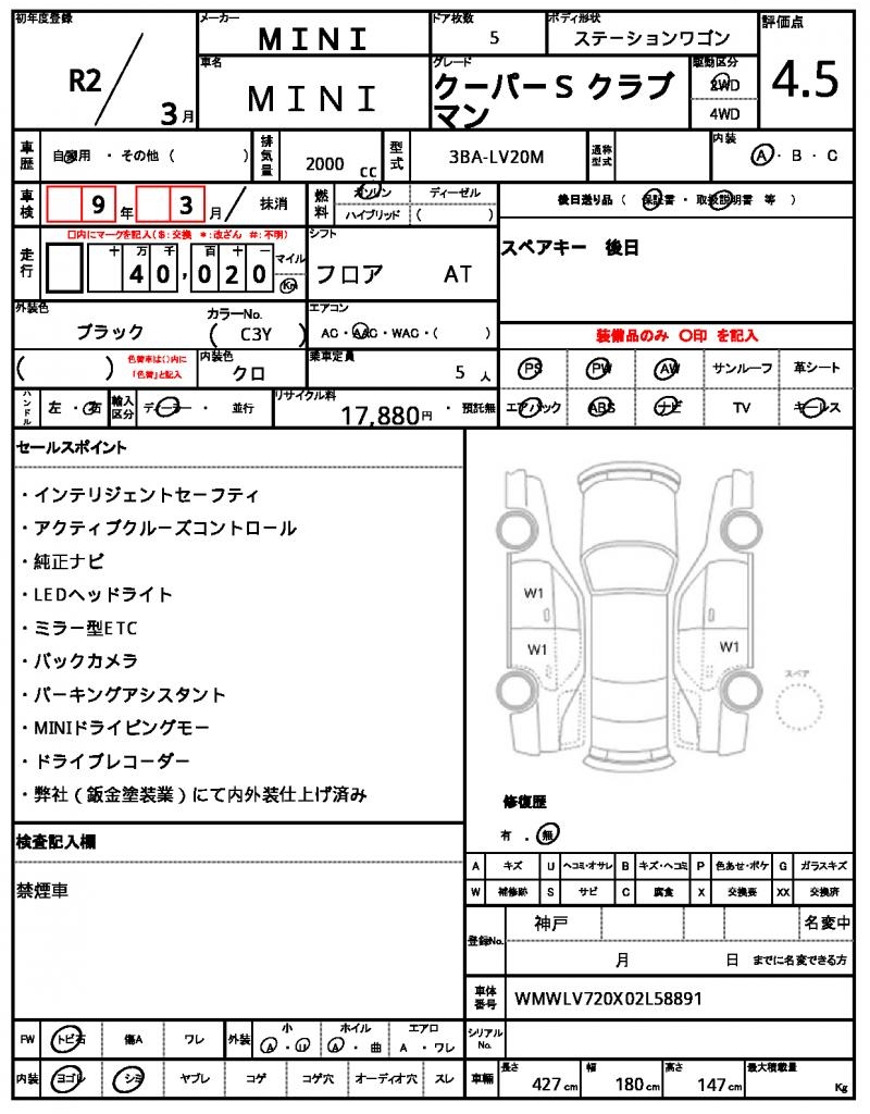 | VIN/Serial No. | WMWLV720X02L58891 |