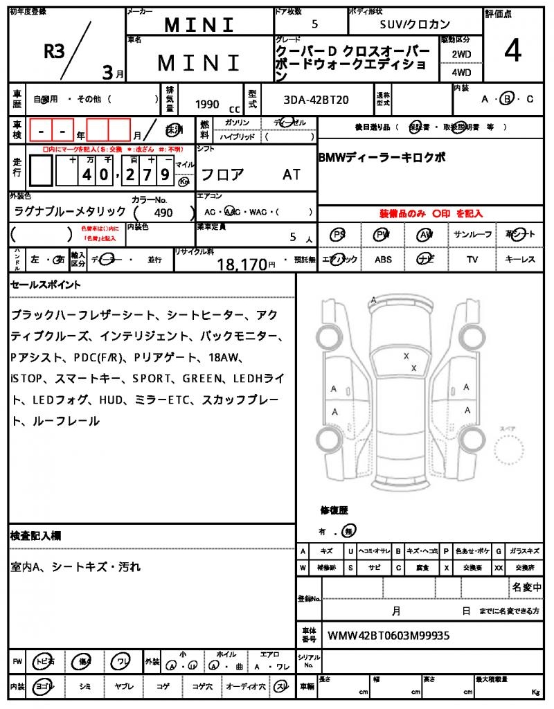 | VIN/Serial No. | WMW42BT0603M99935 |