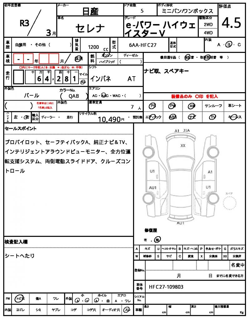 | VIN/Serial No. | HFC27-109803 |