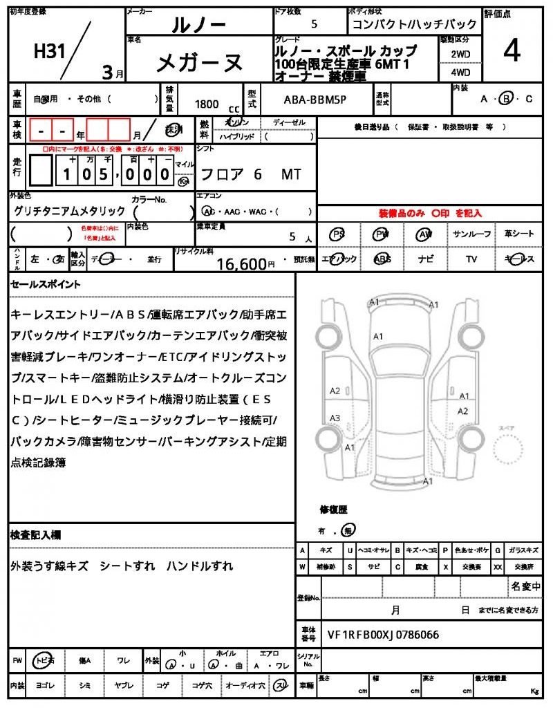 | VIN/Serial No. | VF1RFB00XJ0786066 |