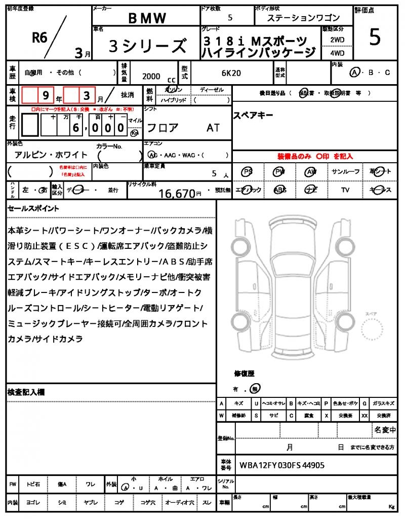 | VIN/Serial No. | WBA12FY030FS44905 |